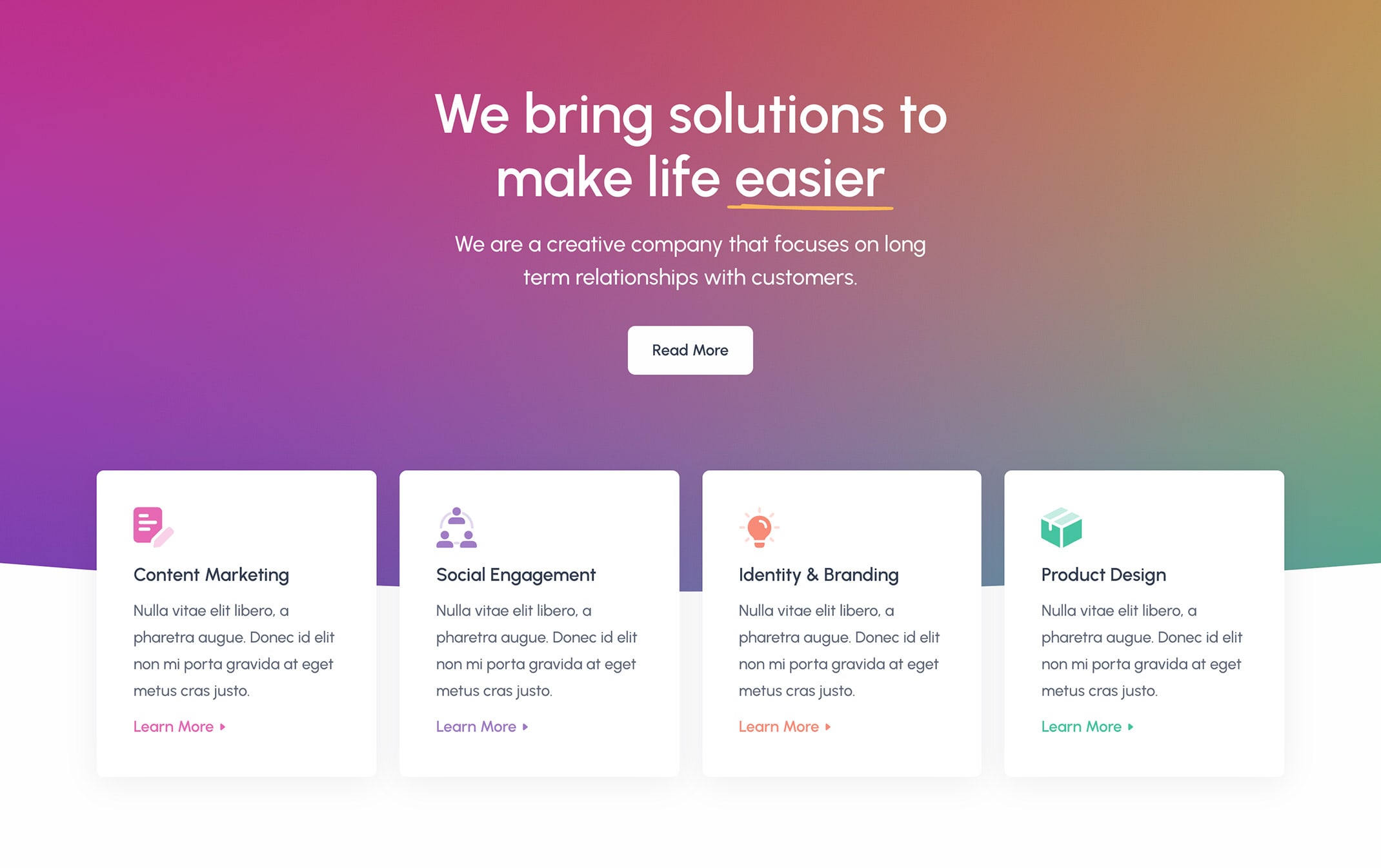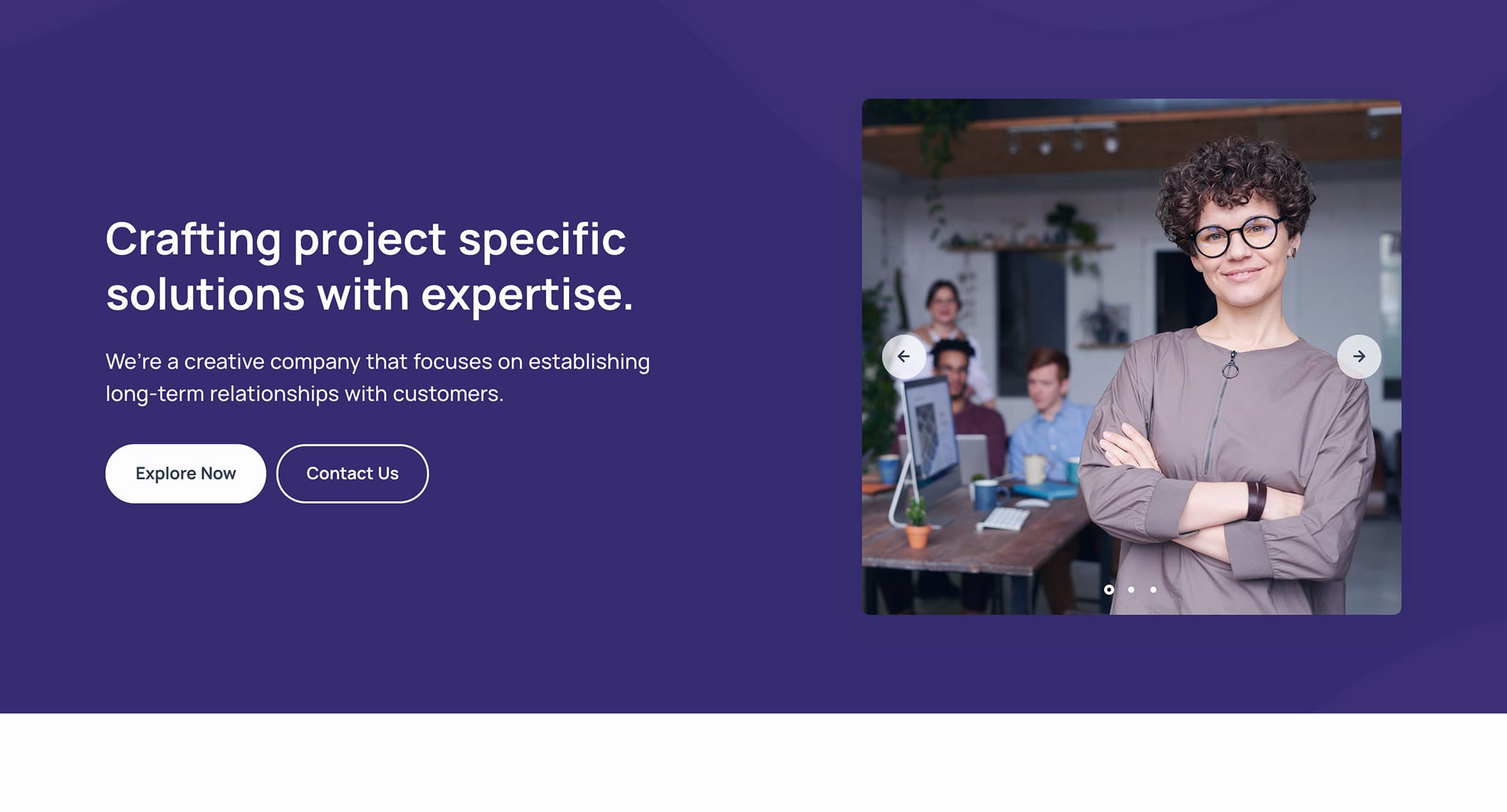 <p class="lead fs-24 text-white lh-sm mb-7 mx-md-13 mx-lg-10">We are a creative company that focuses on long term relationships with customers.</p>